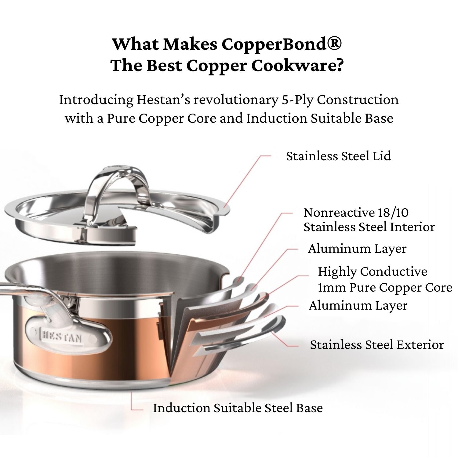 Hestan CopperBond 10-Piece Set: 8.5" & 11" Open Skillets, 1.5qt & 3.0qt Covered Saucepans, 3.5qt Covered Sauté w/helper handle, 8.0qt Covered Stockpot